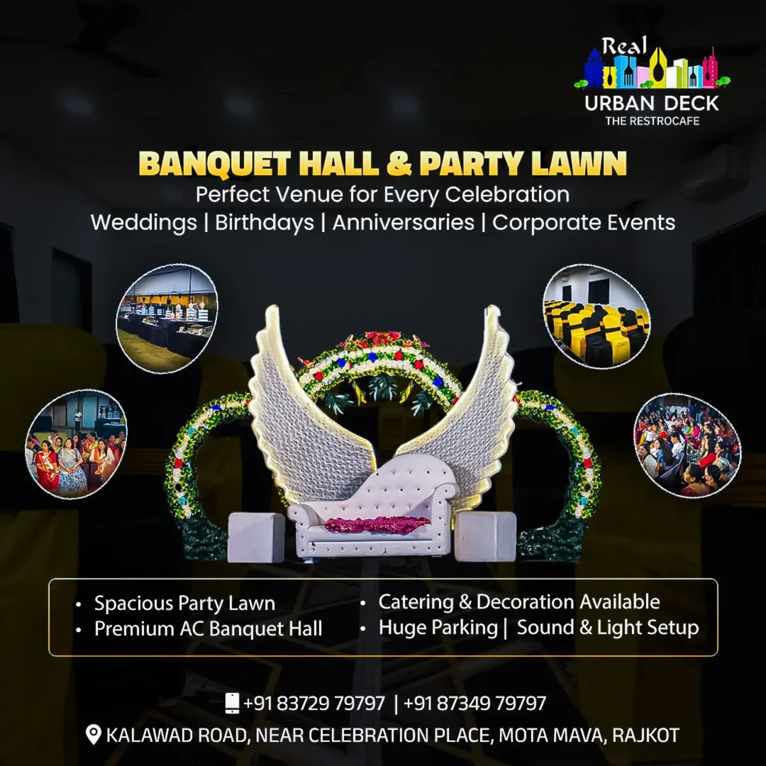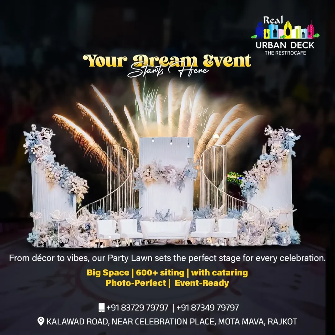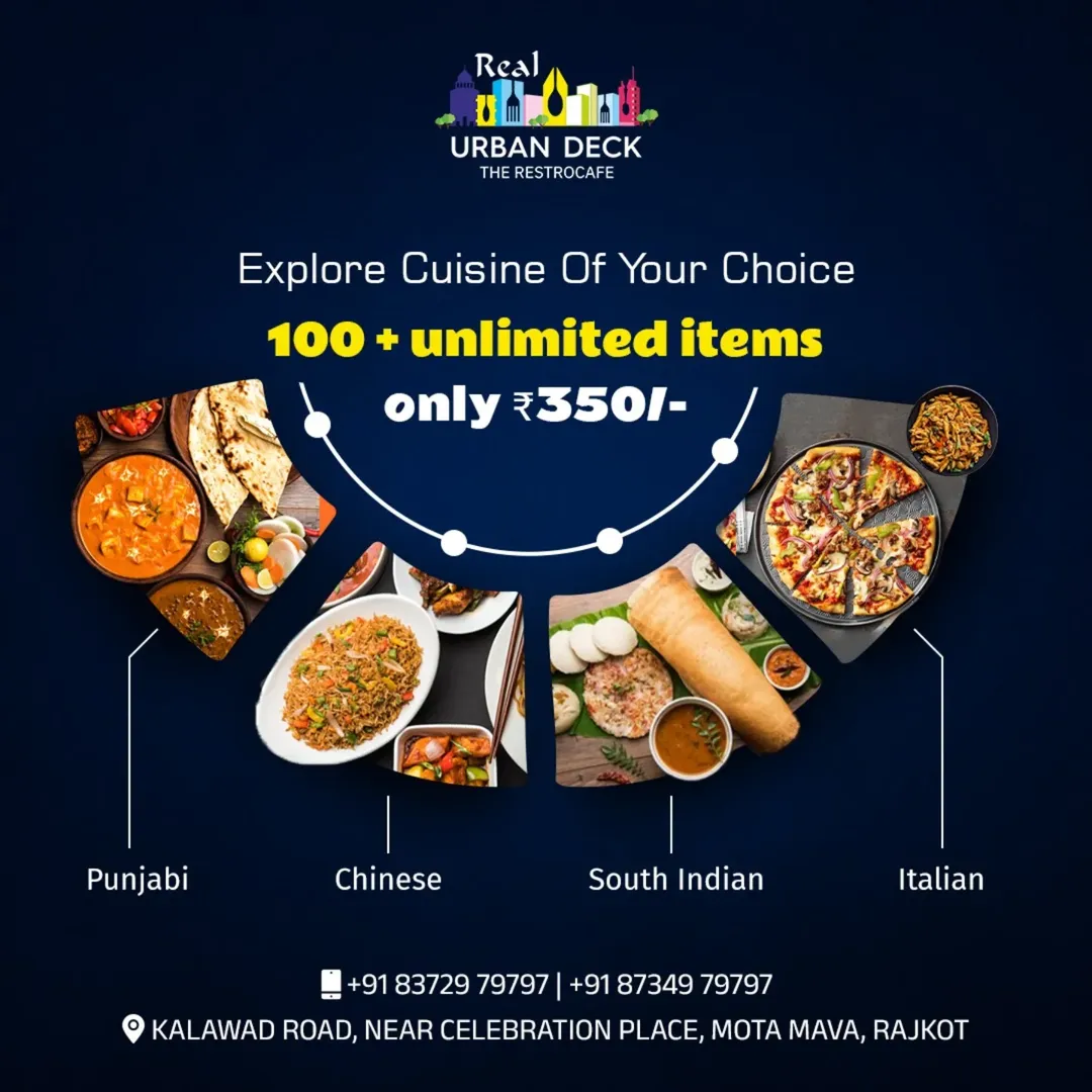 Real Urban Deck is the latest venture of Real Group. Located in an open space in Rajkot, Real Urban Deck is a rooftop restaurant where you can enjoy your meal in a peaceful ambience with a beautiful view of the city.